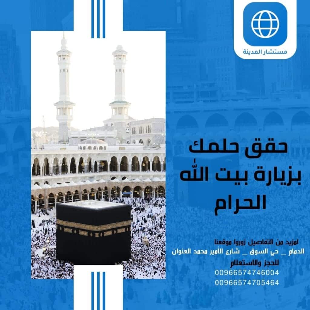 مستشار المدينة لخدمات المعتمرين بالدمام يقدم لك كل الدعم: من الحجز، النقل، الإقامة، الإرشاد، وحتى المتابعة بعد العودة.